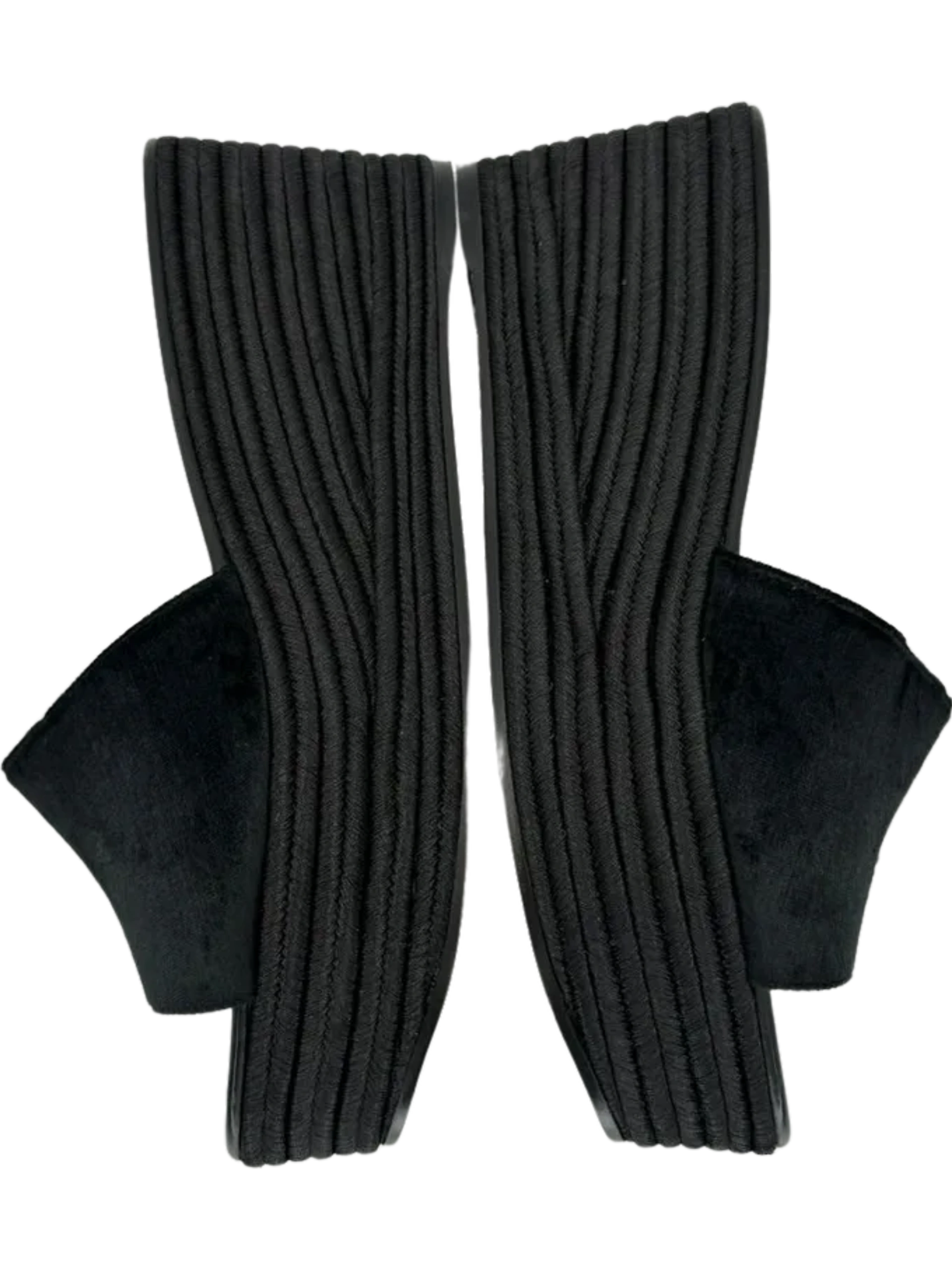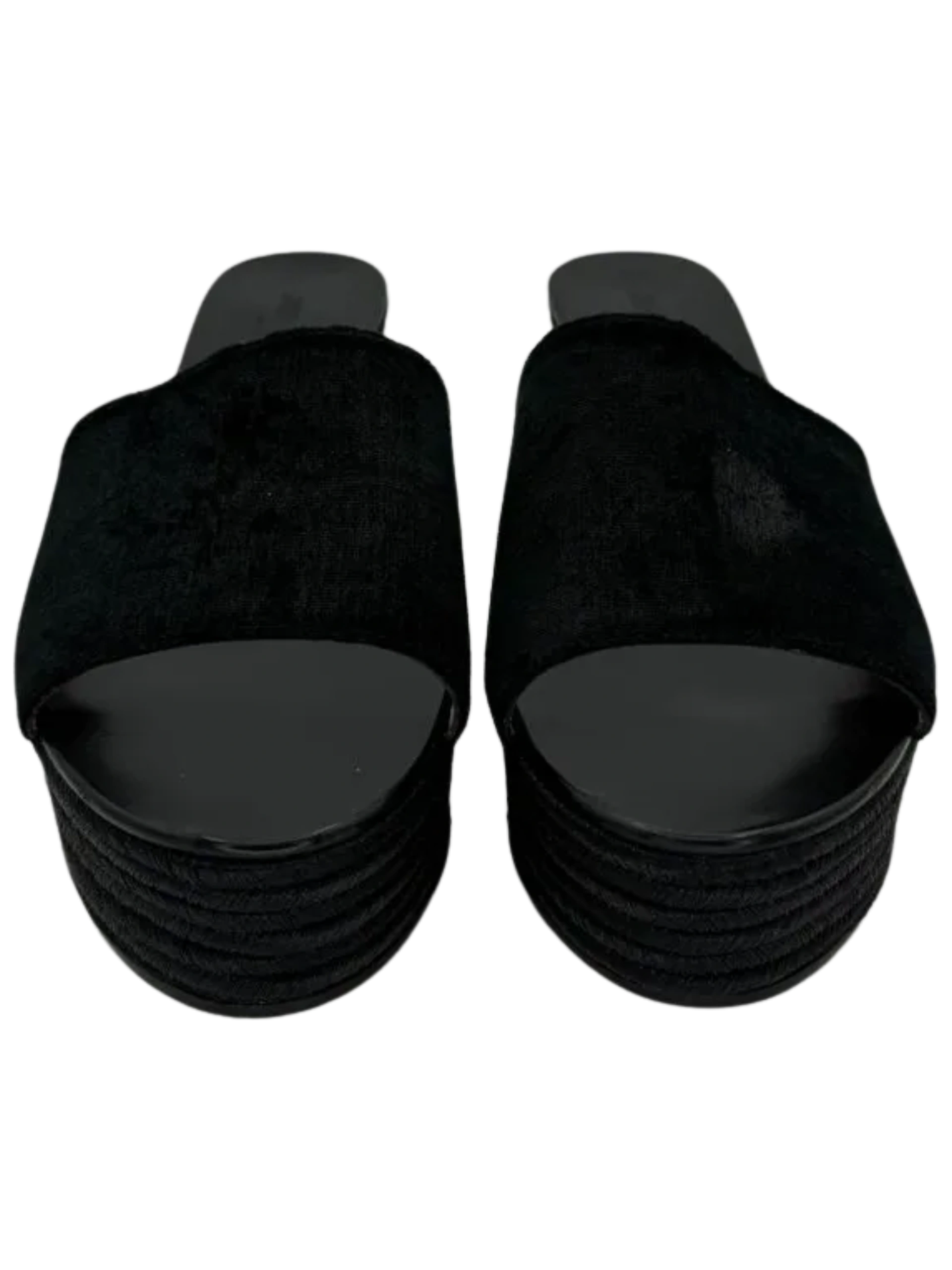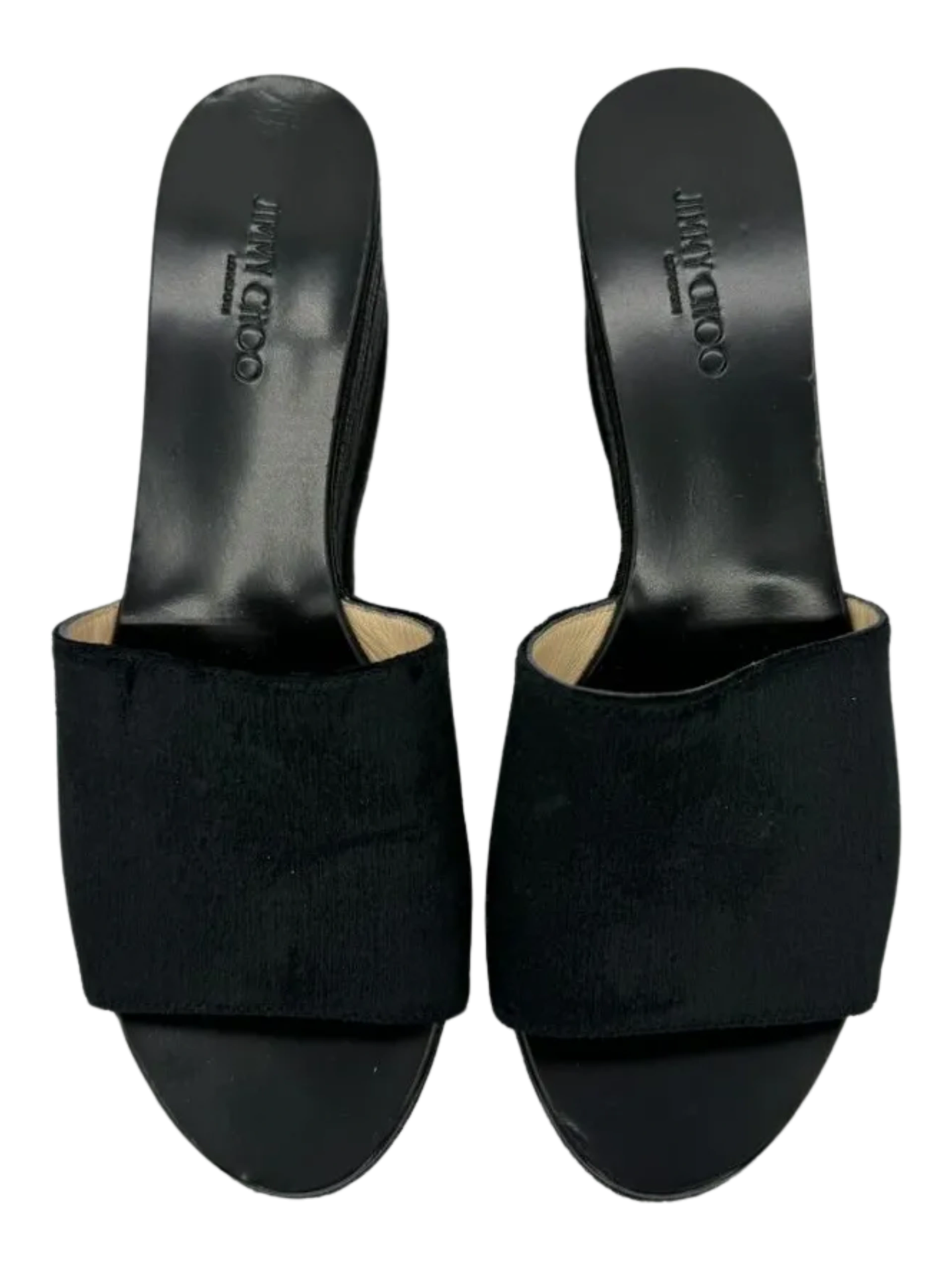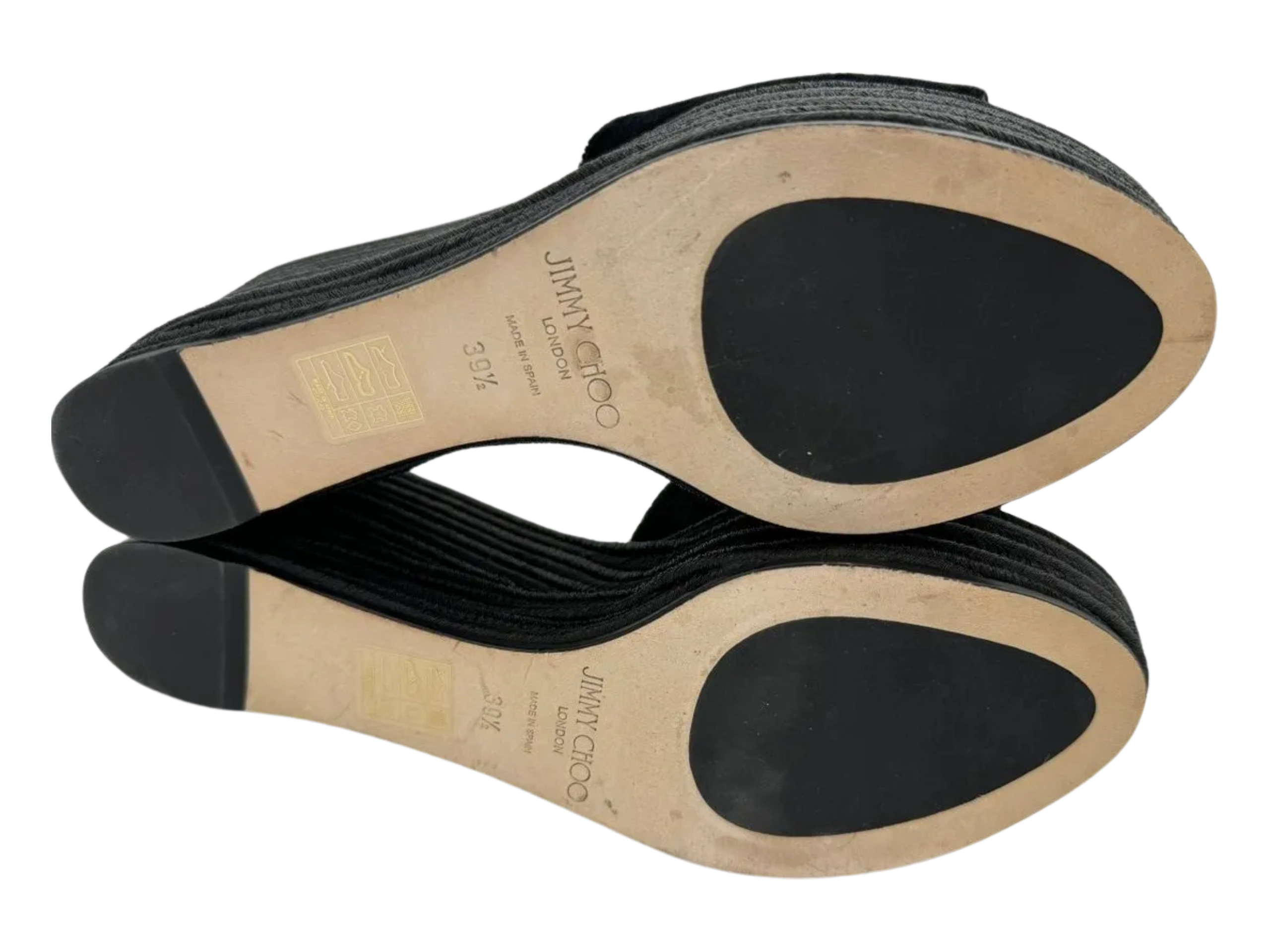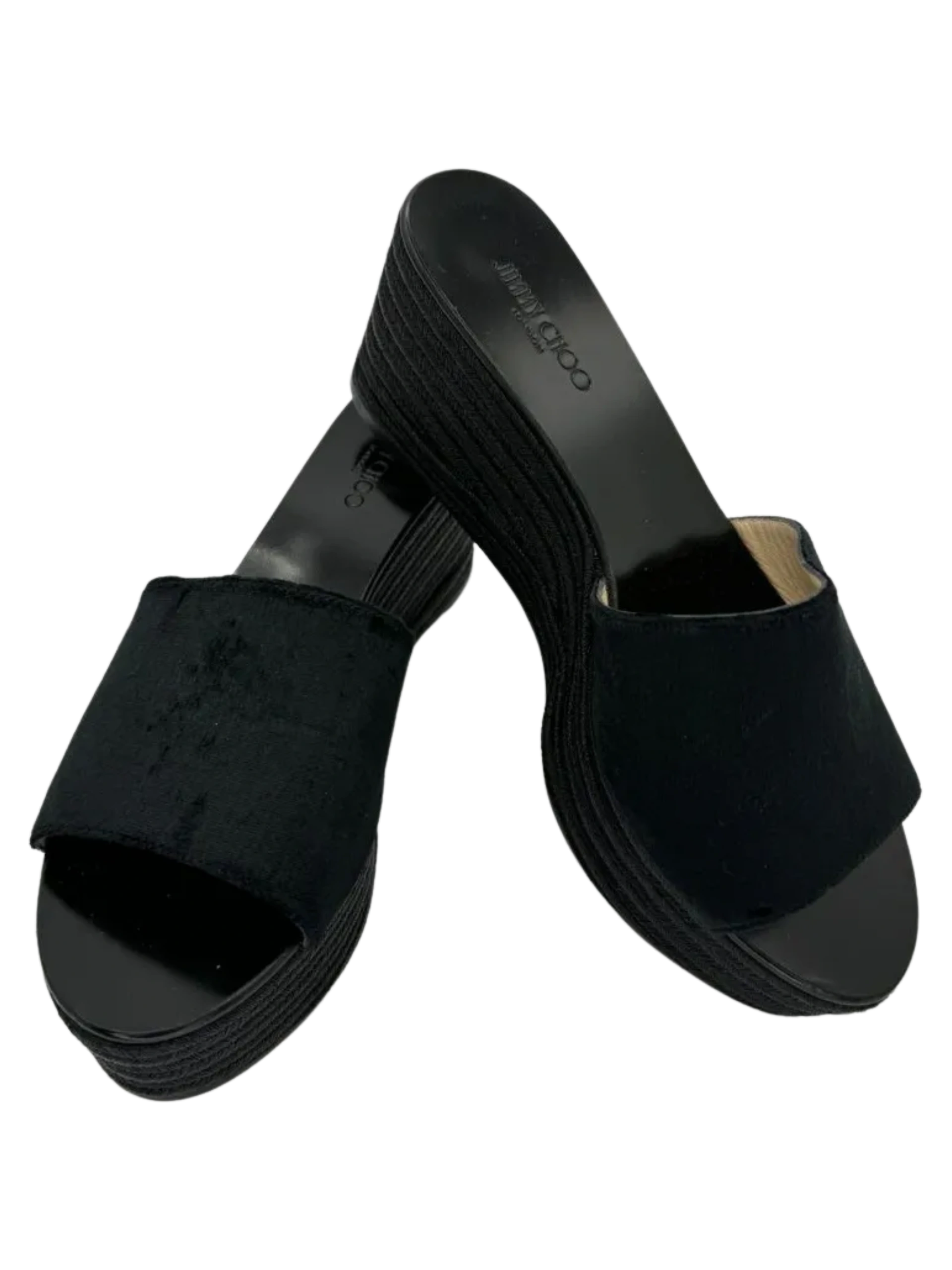 Jimmy Choo Deedee Liquid Velvet Jute Wedge Sandals, 3" rope covered cork wedge, leather lined. 39.5, Made in Spain. Condition - Excellent/Brand New.