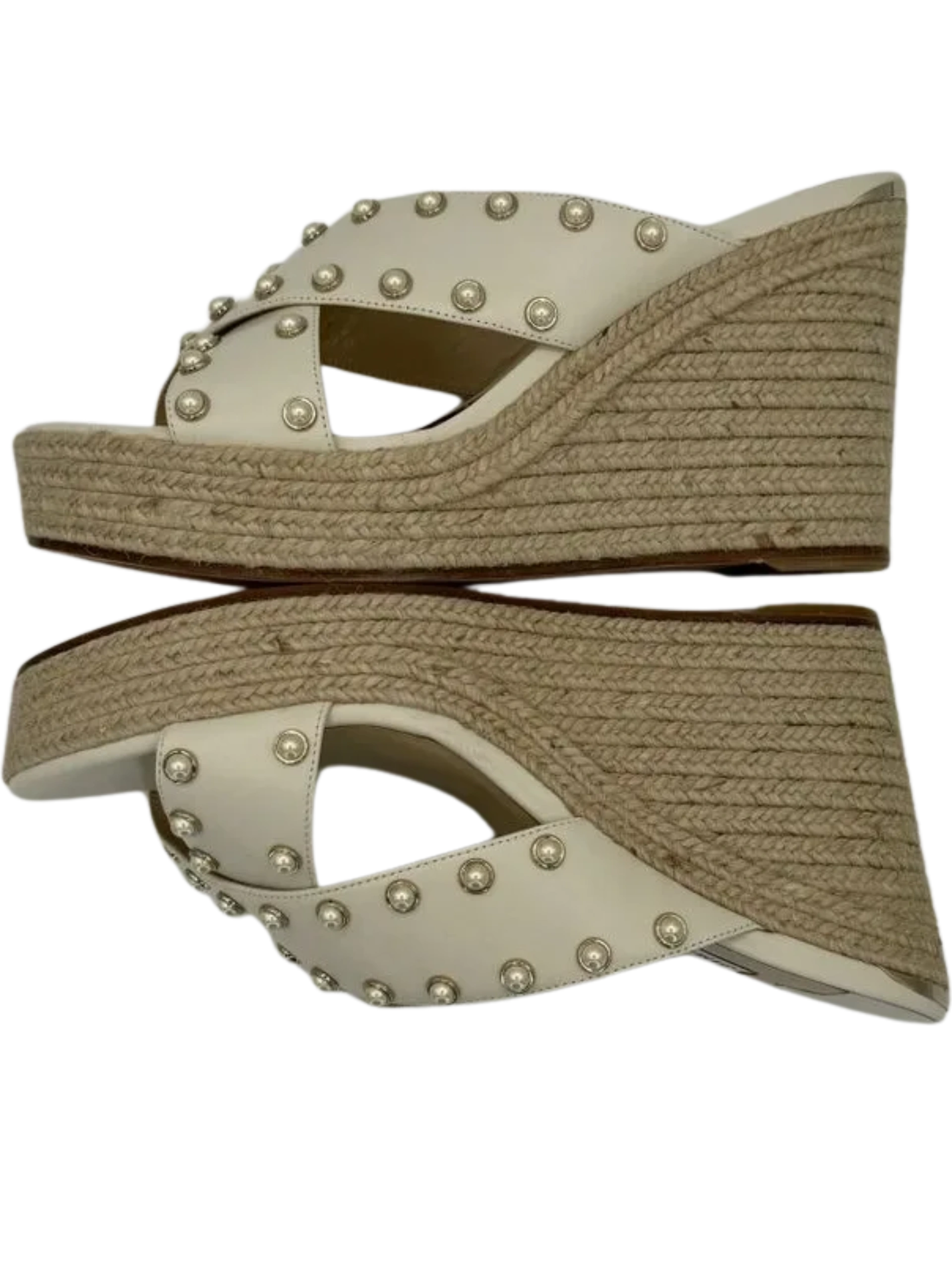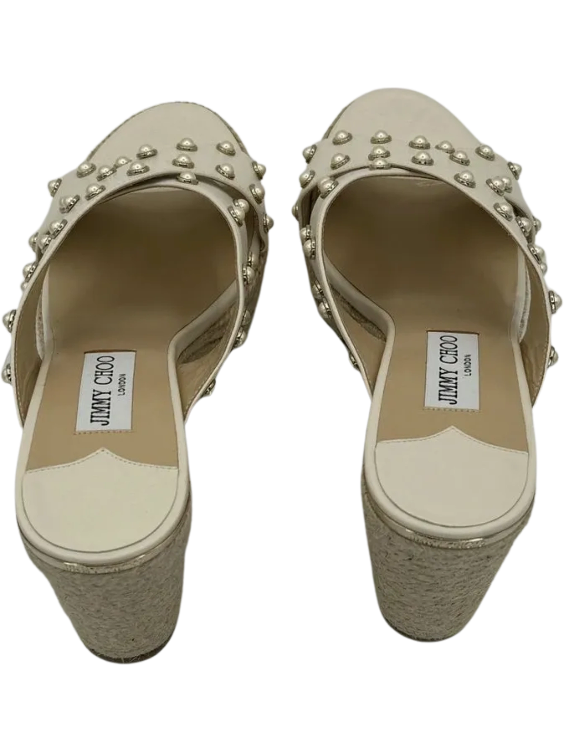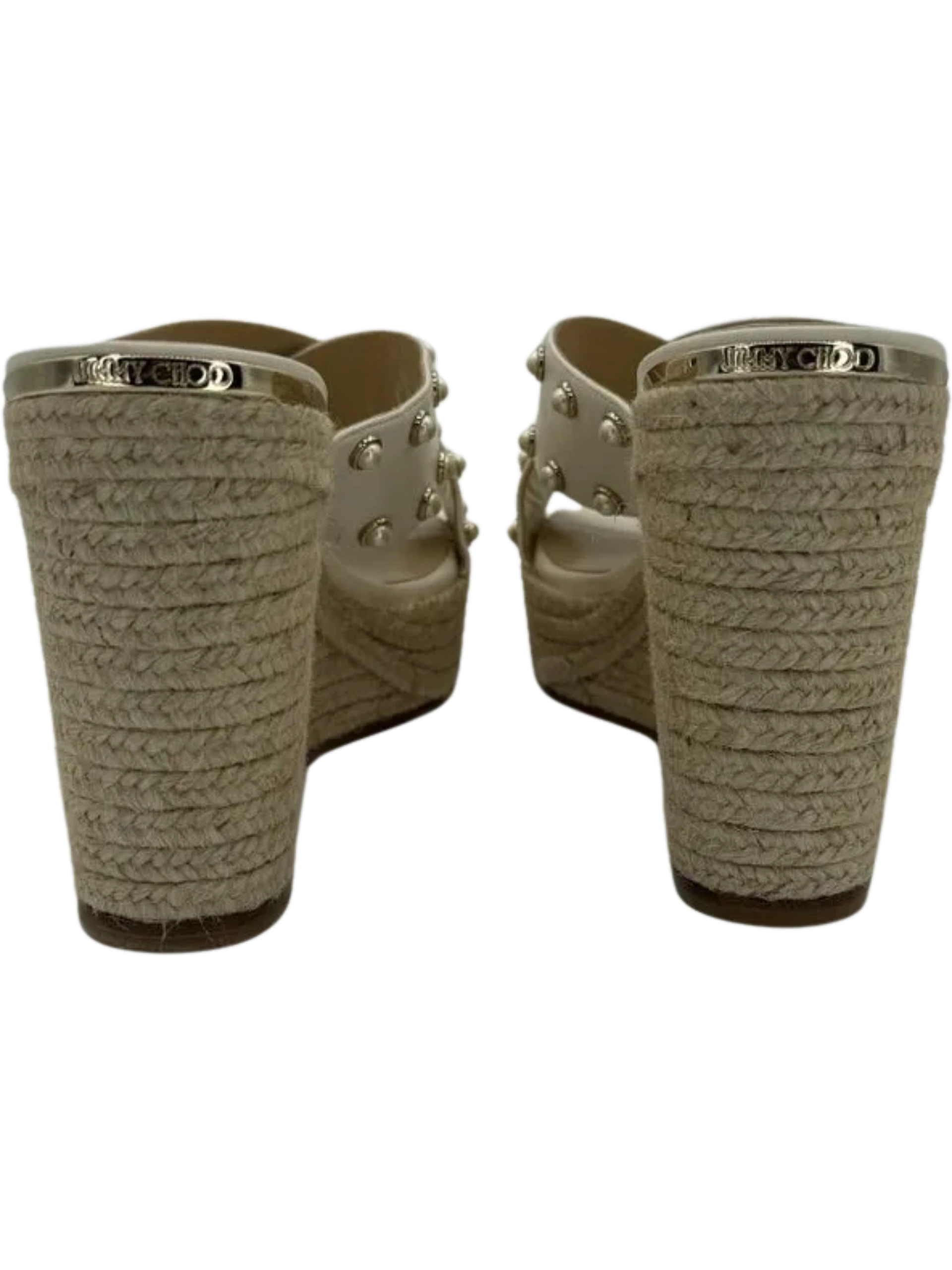 *NEW* Jimmy Choo Dovina Studded Wedge Sandals Women's Size 39.5 in a Creamy White color. Made in Spain. Open toe, Slip On.