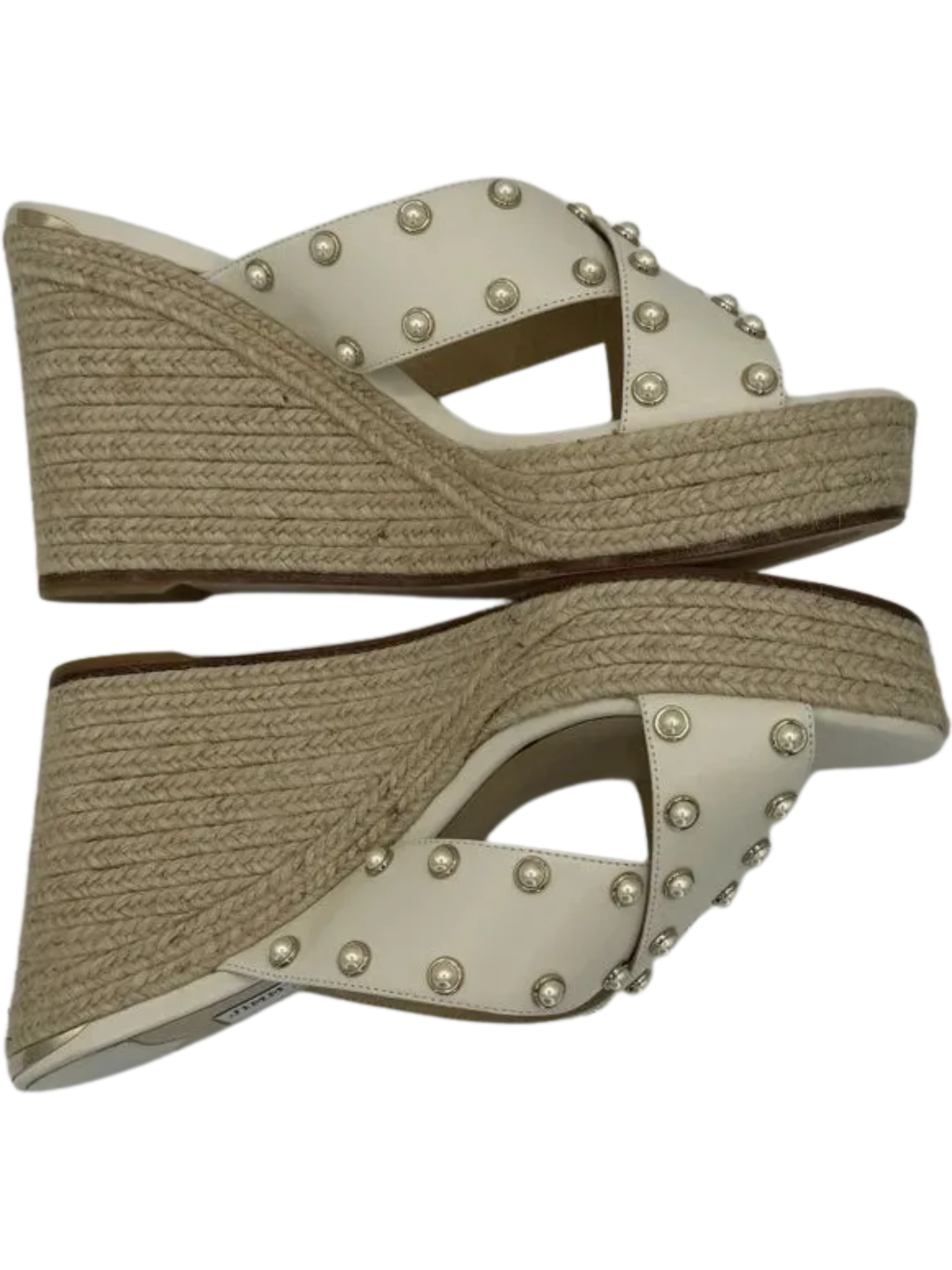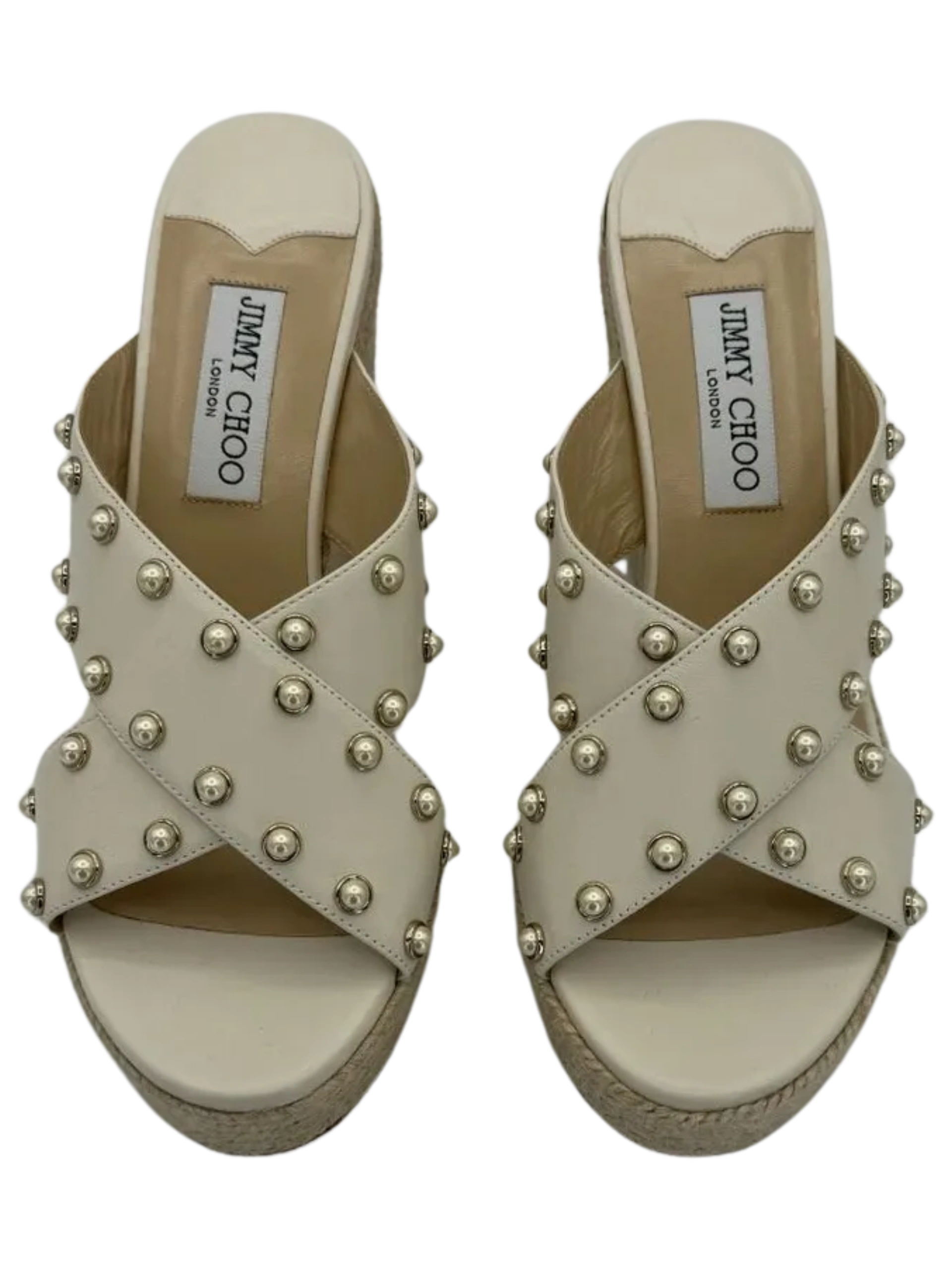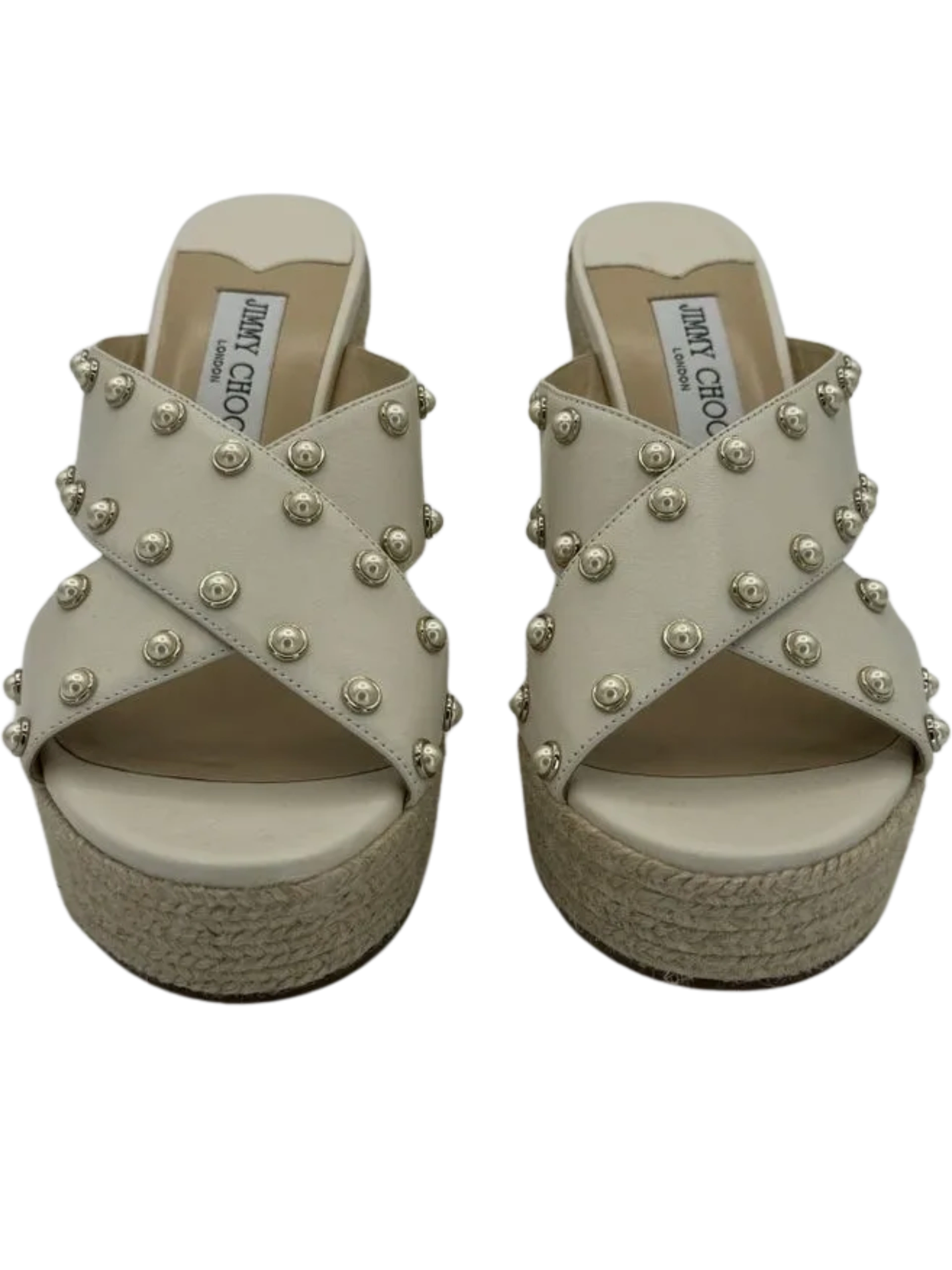 *NEW* Jimmy Choo Dovina Studded Wedge Sandals Women's Size 39.5 in a Creamy White color. Made in Spain. Open toe, Slip On.