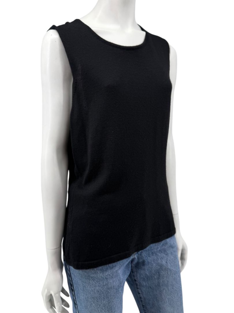 Timeless and refined, this Oscar de la Renta twin sweater set is crafted from a luxurious 70% cashmere and 30% silk blend. The set includes a sleeveless shell and coordinating open-front cardigan with 3/4 sleeves. Designed in classic black, it offers effortless elegance and versatility—perfect layered together for a polished look or styled separately. The fine knit has a soft, lightweight hand with beautiful drape. Minor signs of wear consistent with gentle use; overall well maintained.