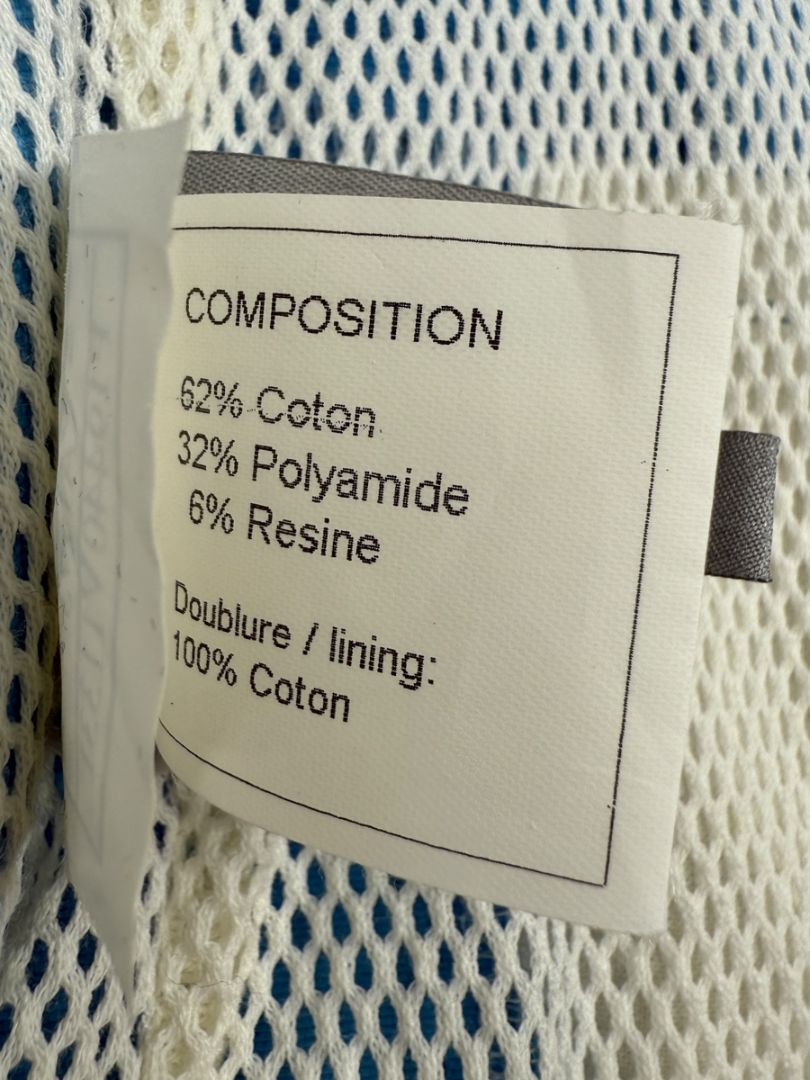 Fabric: 62% Cotton, 32% Polyamide, 6% Resin; Lining: 100% Cotton