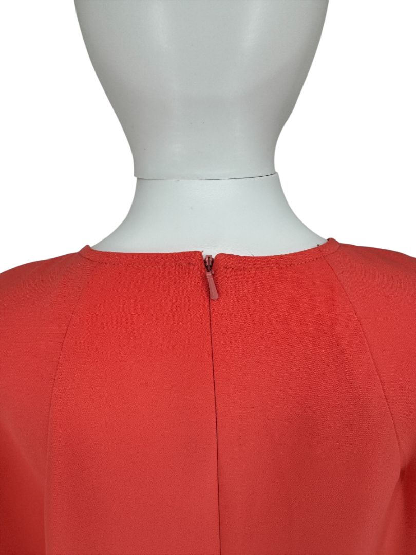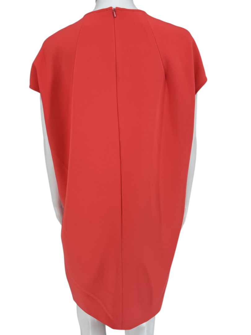 Pamella Roland Sleeveless Shift Dress in Coral with Beaded Brooch Detail