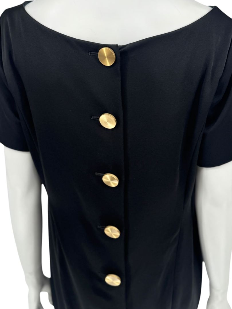 Pamella Roland Black Back Button Shift Dress with Gold Hardware - Large (Please See Measurements)