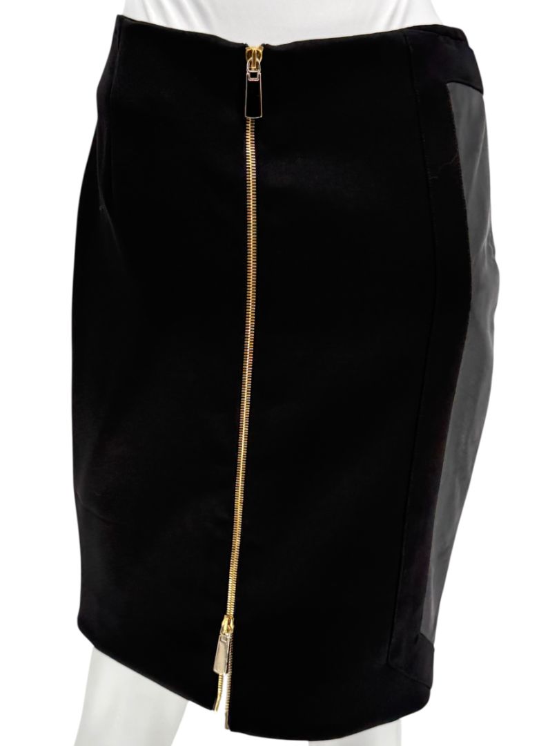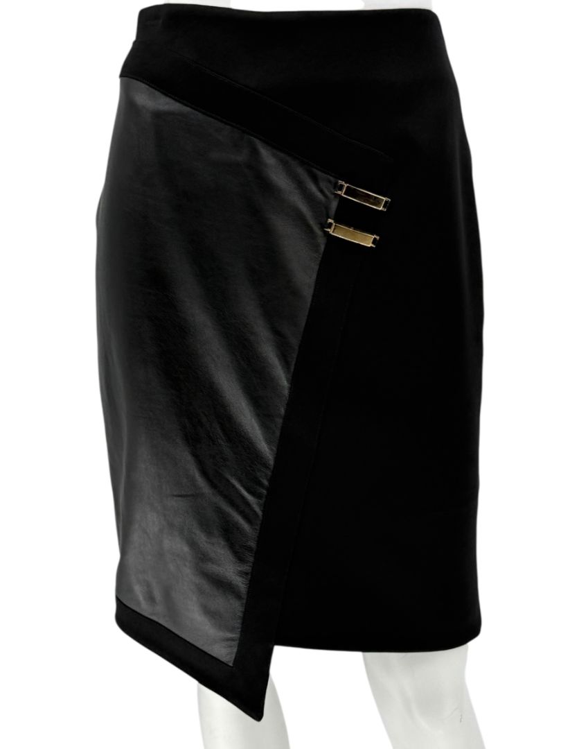 Pamella Roland Black Skirt with Leather Panel & Gold Zipper – Fits Like a Large