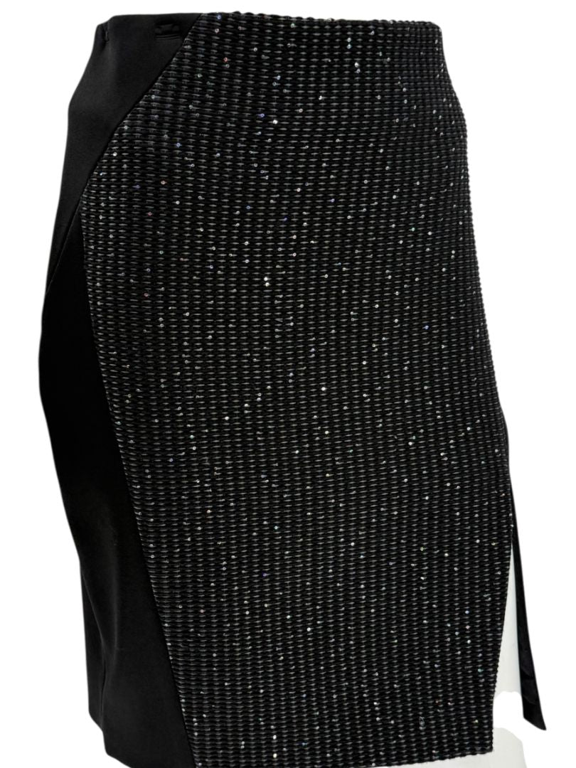 Pamella Roland Black Textured Sequin Skirt – Fits Like a Large