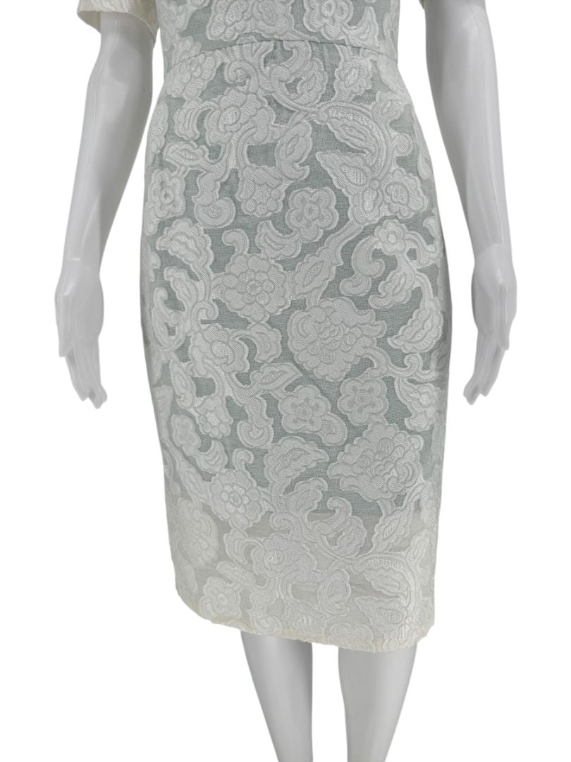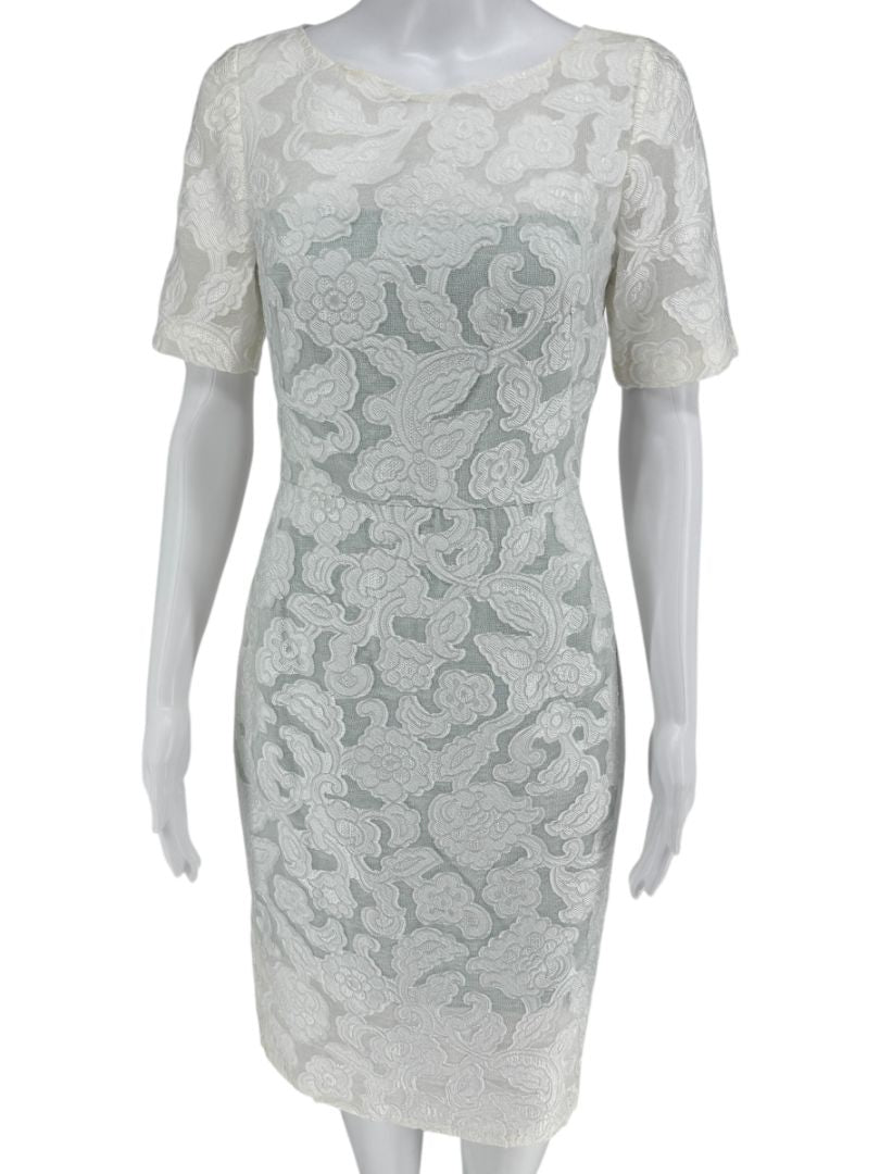 Pamella Roland Ivory Floral Lace Sheath Dress