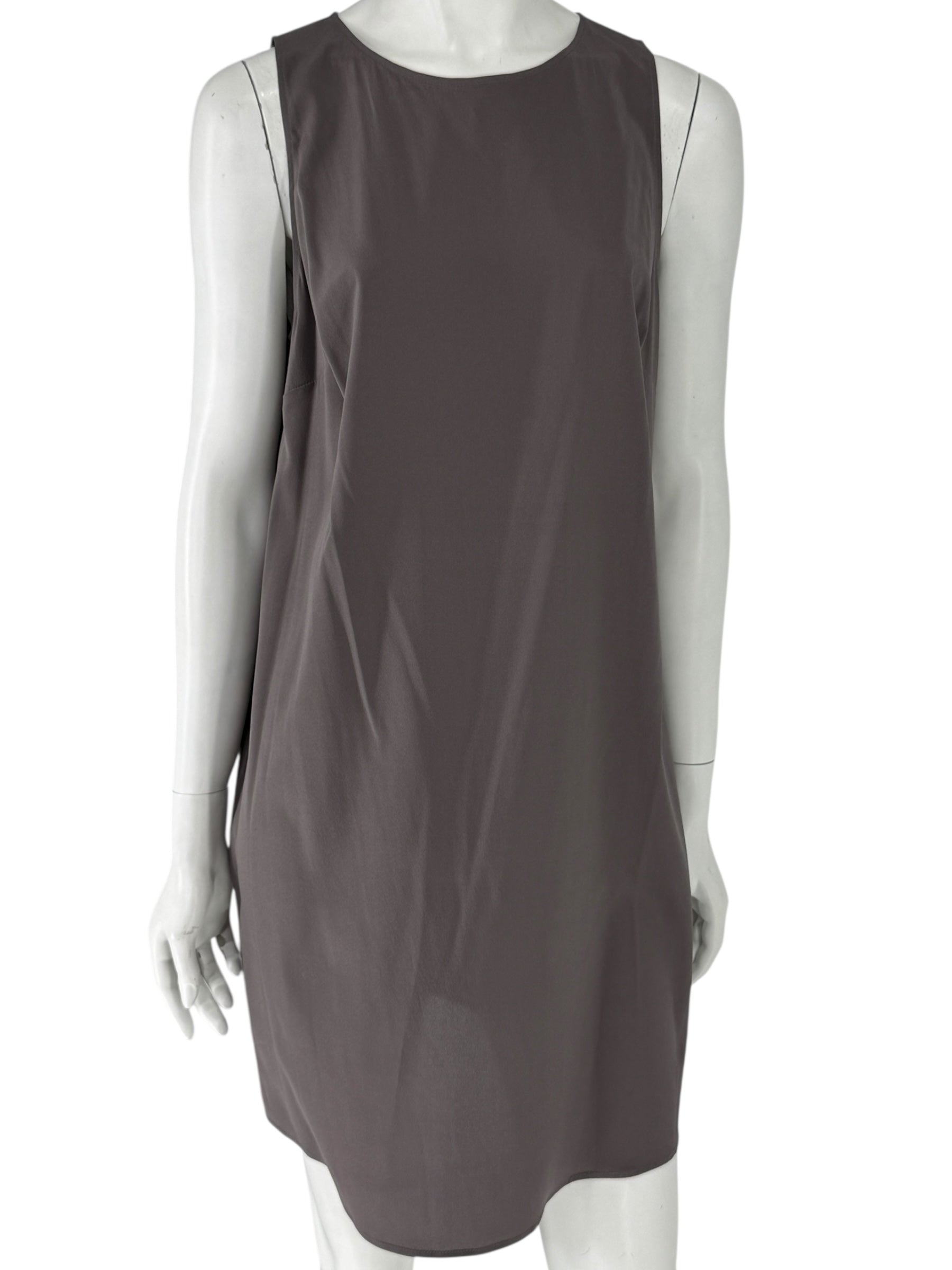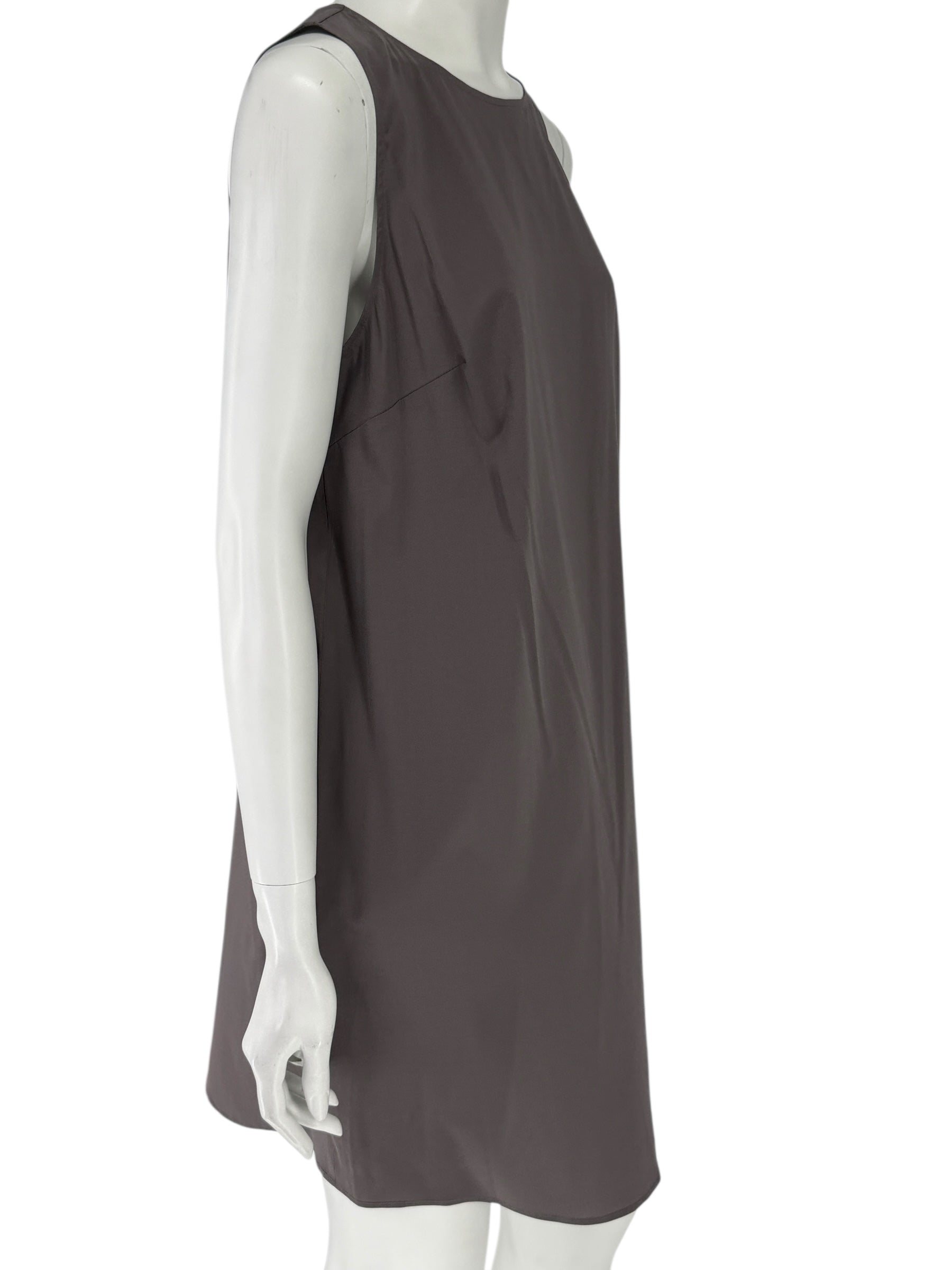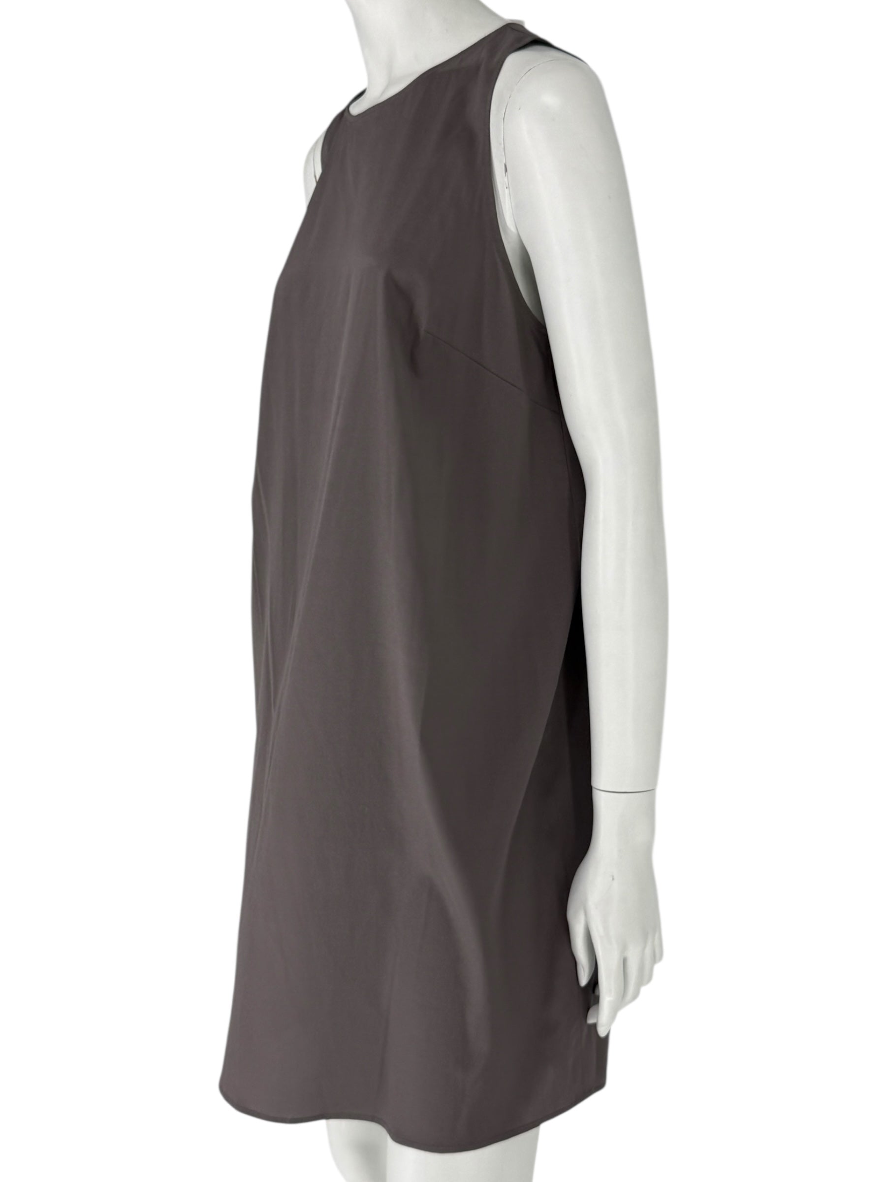 A subtle back keyhole with button closure adds a delicate finishing touch while maintaining the streamlined aesthetic. Timeless and versatile, this piece works equally well as a stand-alone minimalist dress, an elevated layering piece under jackets or knits, or styled with statement accessories for evening.