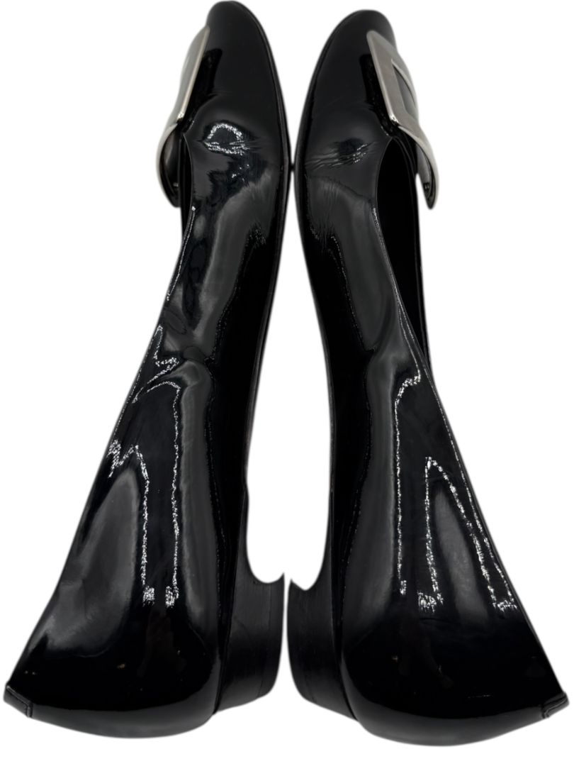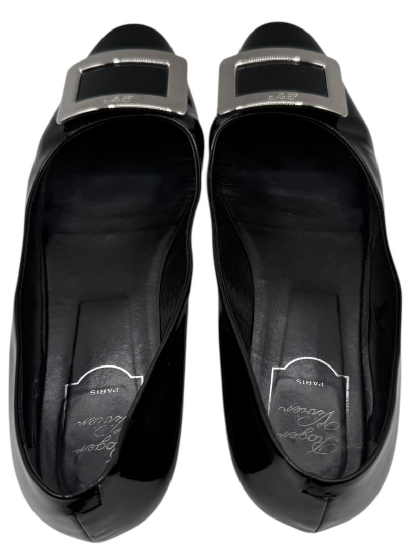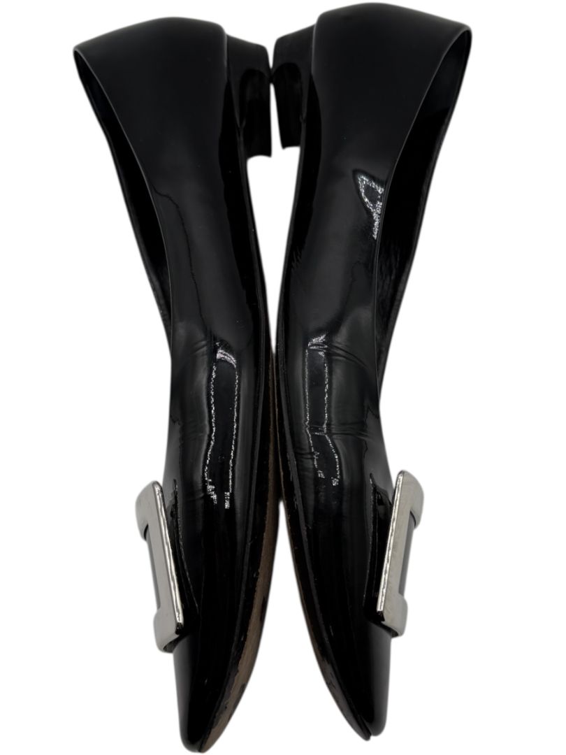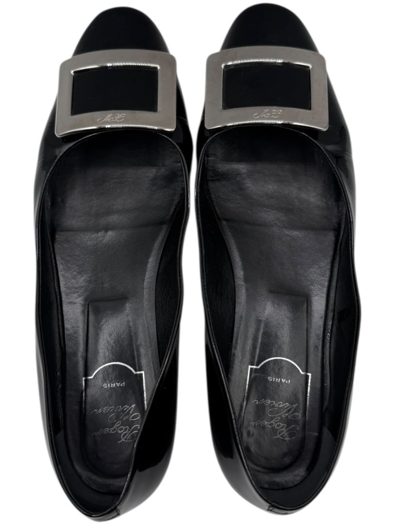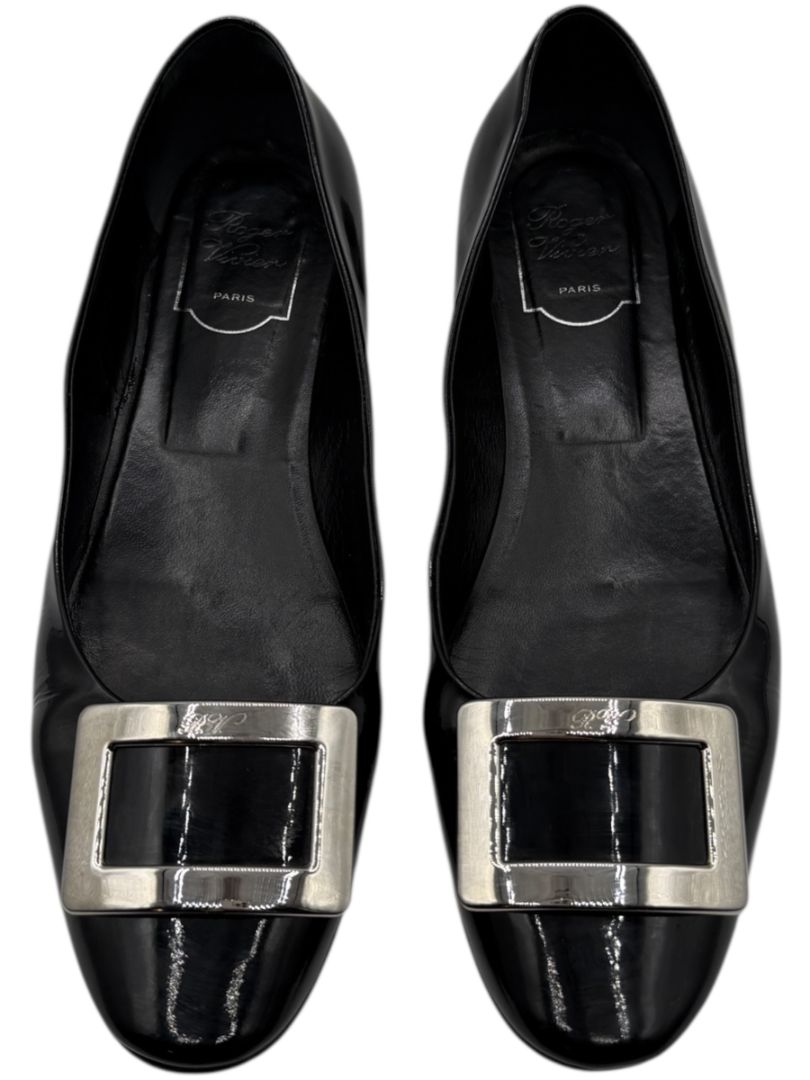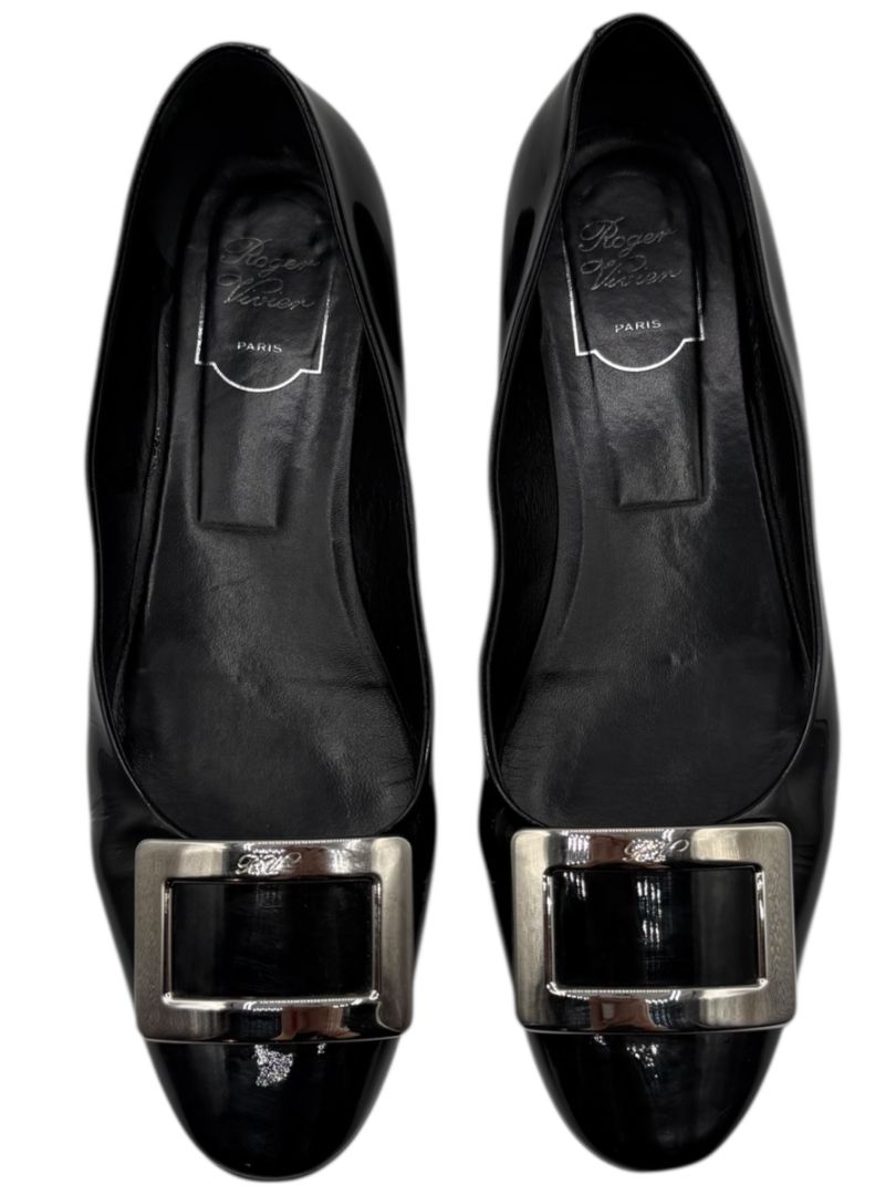 Roger Vivier Black Patent Leather Buckle Flats – Size 40 – Heavy Wear – With Box