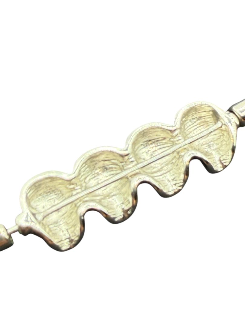 This striking unbranded accessory features four detailed skulls arranged in a bold linear design, crafted in a polished silver-tone metal. Versatile in styling, it functions beautifully as both a tie bar and a brooch, adding an edgy, alternative touch to jackets, vests, scarves, bags, or neckwear. Each skull is sharply sculpted with defined eye sockets, teeth, and contouring for a clean, high-impact look.