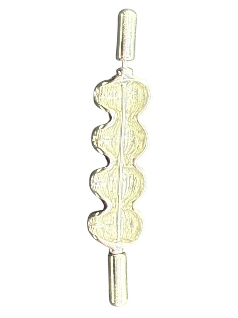 The piece is in excellent preowned condition with a bright, consistent finish and no dents, discoloration, or structural issues. The metal bar ends are smooth and secure, and the reverse side shows minimal signs of prior handling.