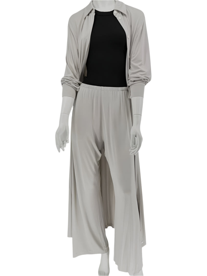Wear as an easy matching set for travel or off-duty luxe. Style the shirt open over a tonal tank and add low-profile leather slides for a clean, directional look. Perfect for resort lounging, in-flight comfort, or understated elegance at home.