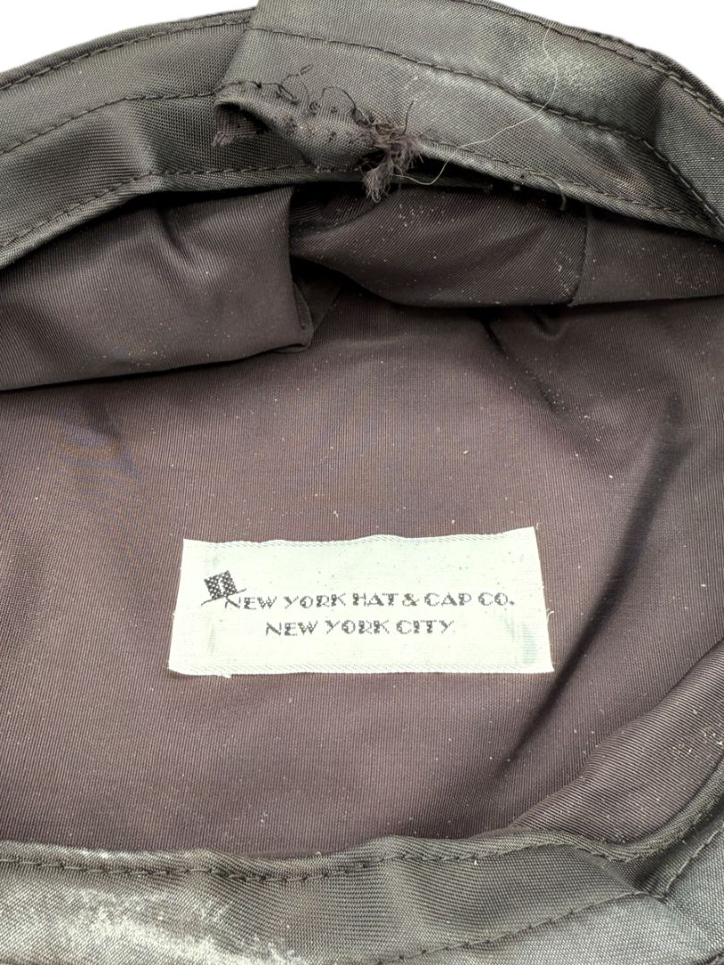 The interior is fully lined for comfort and structure and finished with a New York Hat & Cap Co., New York City label, reflecting quality millinery construction. The velvet retains its plush feel and rich coloration, highlighting the craftsmanship and timeless appeal of the piece.